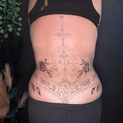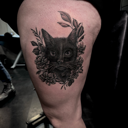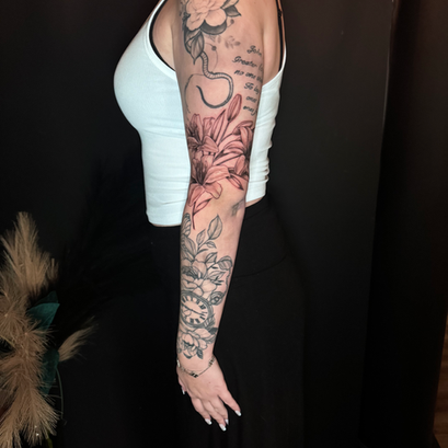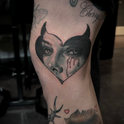 My name is Kendra Maxine, and I am a dedicated tattoo artist, with a passion for black & grey realism. My distinctive style is characterized by heavily detailed, high-contrast designs, with a focus on female faces, human skulls, and gothic architecture. My meticulous approach involves layering the details gently, ensuring minimum trauma to the skin & prioritizing the best healed results that continue to captivate for years to come. Committed to continuous learning, I regularly attend seminars to elevate my craft, ensuring that every tattoo not only reflects individuality, but stands the test of time.